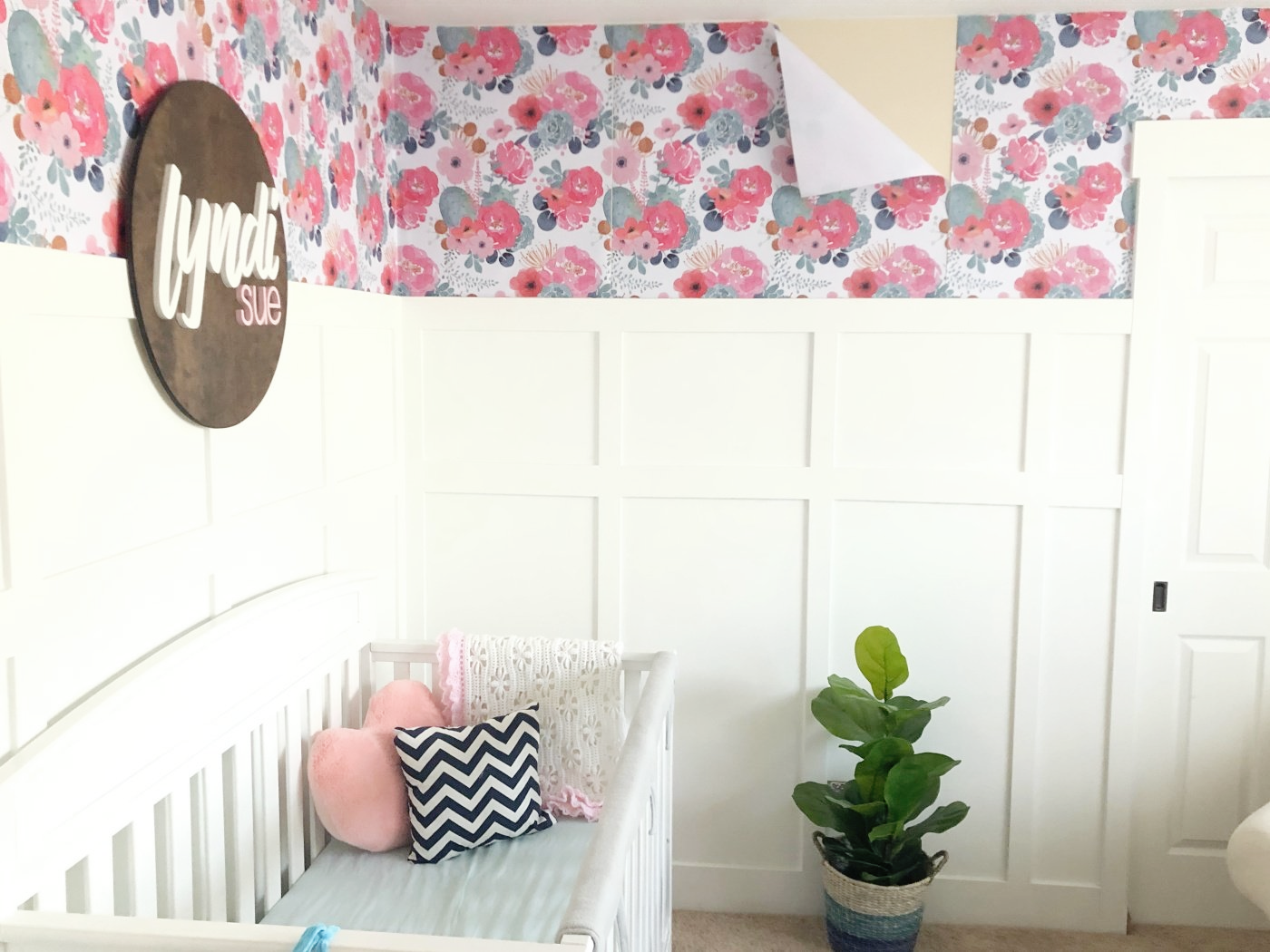 I was all heart-eyes for this wallpaper and it welcomed home our baby girl, Lyndi Sue, in all of it’s pink and flowery glory.