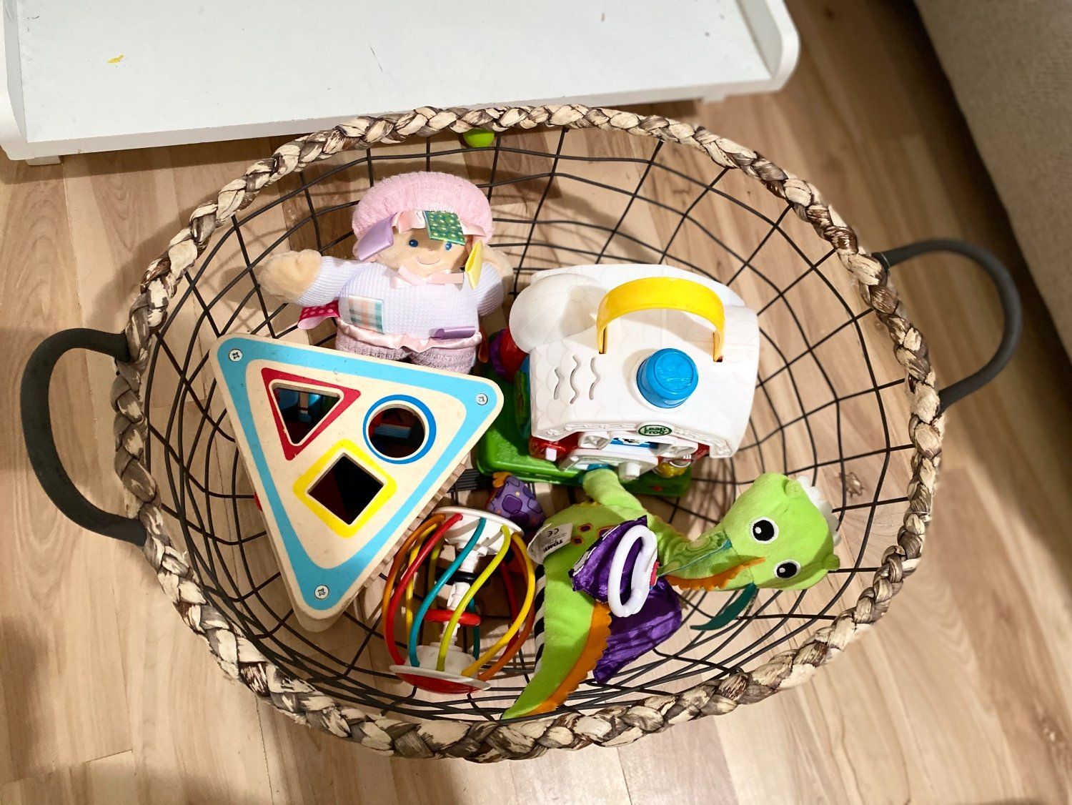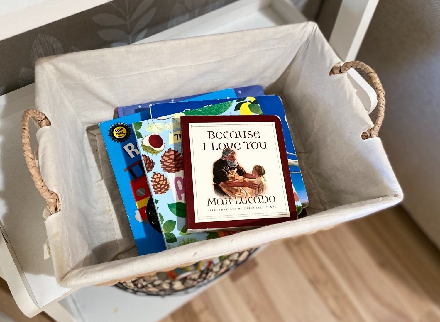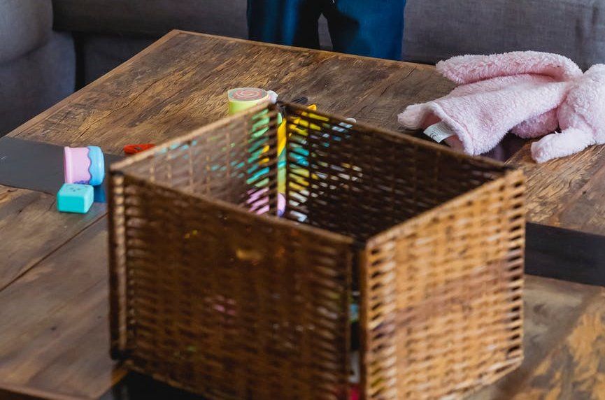 - Okay so IF you have toy boxes/bins in various rooms of your house (i.e. not a designated play room), use the “rule of fives.” I’m not sure if that’s a thing or if I made it up. What I mean is that IN your toy boxes/bins, try to keep five or less things. Typically this means to select five larger-ish toys, ideally with no “pieces” (I.e. puzzles, card games, etc.) – those are the ones that have been driving me nuts because they end up all over the house! Ugh. It’s tempting to fill the bins up to the brim, but we all know toys will appear out of no where, so they’ll fill up again in no time. But if we strive to keep them less-full, it will leave room for us to quickly stash things in a pinch. This goes for book-bins too (if you have small ones, anyway).