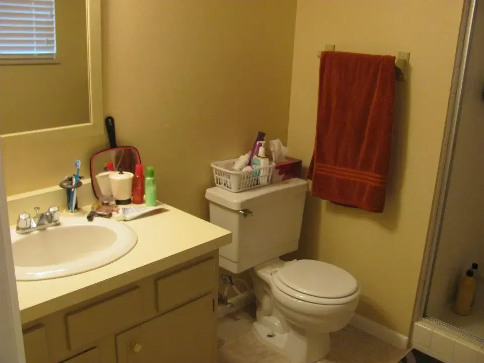 I wanted to show you a two step transformation that we did on our master bathroom. The first step was to, kind of, “get by” because the bathroom left a loooot to be desired. See here:
