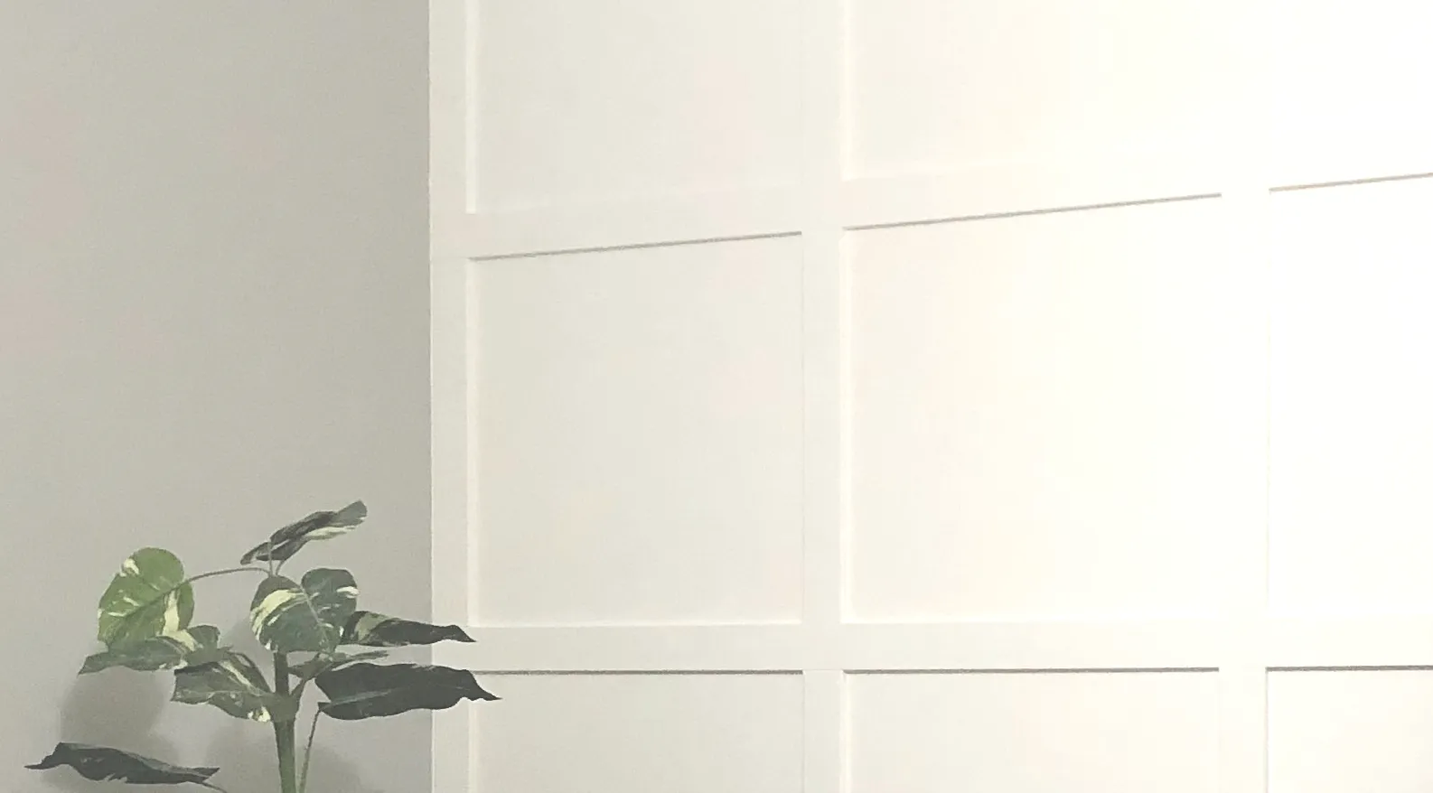 Then, once it’s all marked out, use a nail gun to hang up the trim, use wood putty to fill in the nail holes, caulk the seams, and paint, paint paint! We actually had painted the wall white before adding the trim so it was just a matter of painting the trim itself.