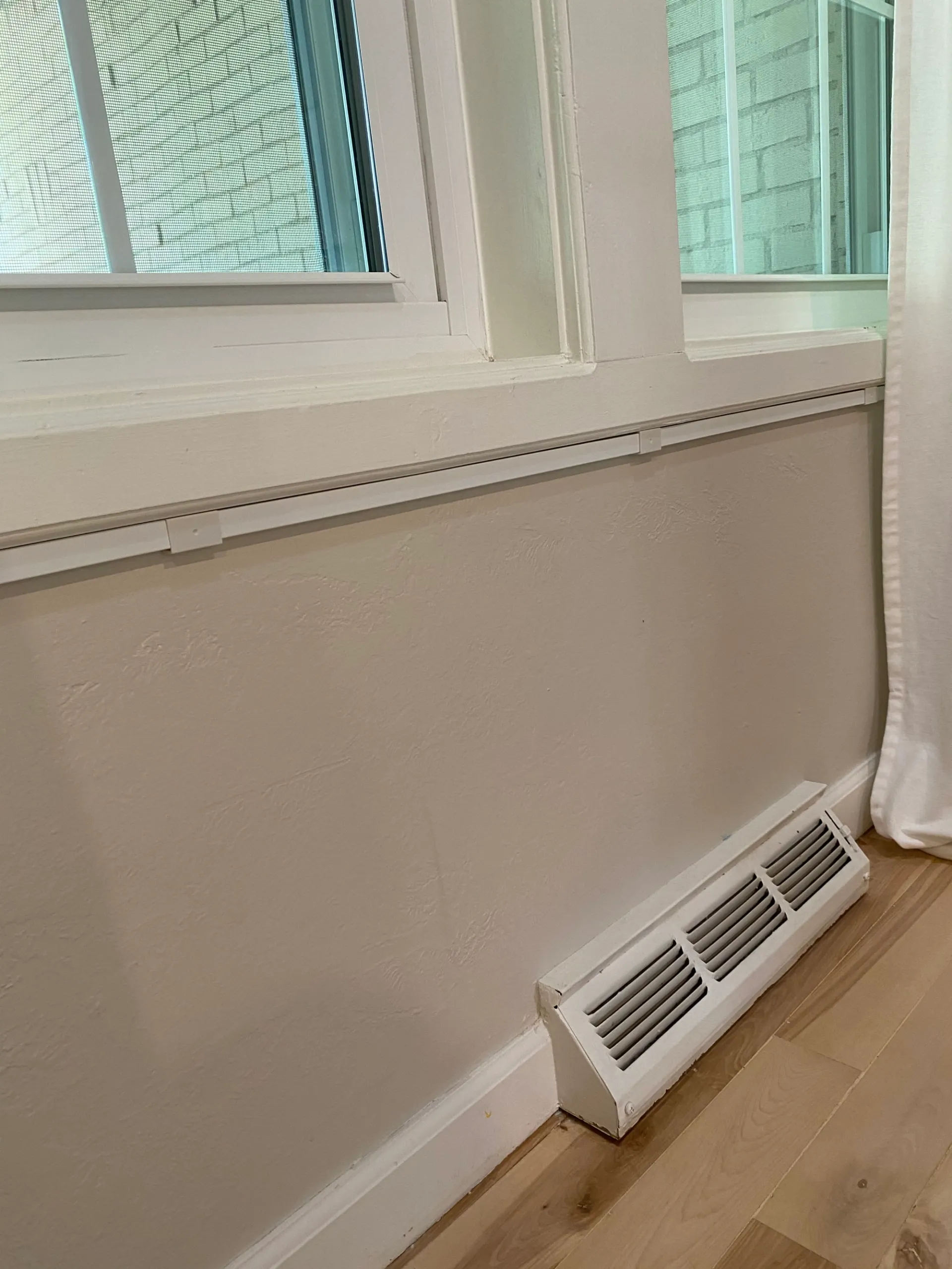 I only painted the ones on the tile, and then hid the rest behind the curtain and under the window, like so: