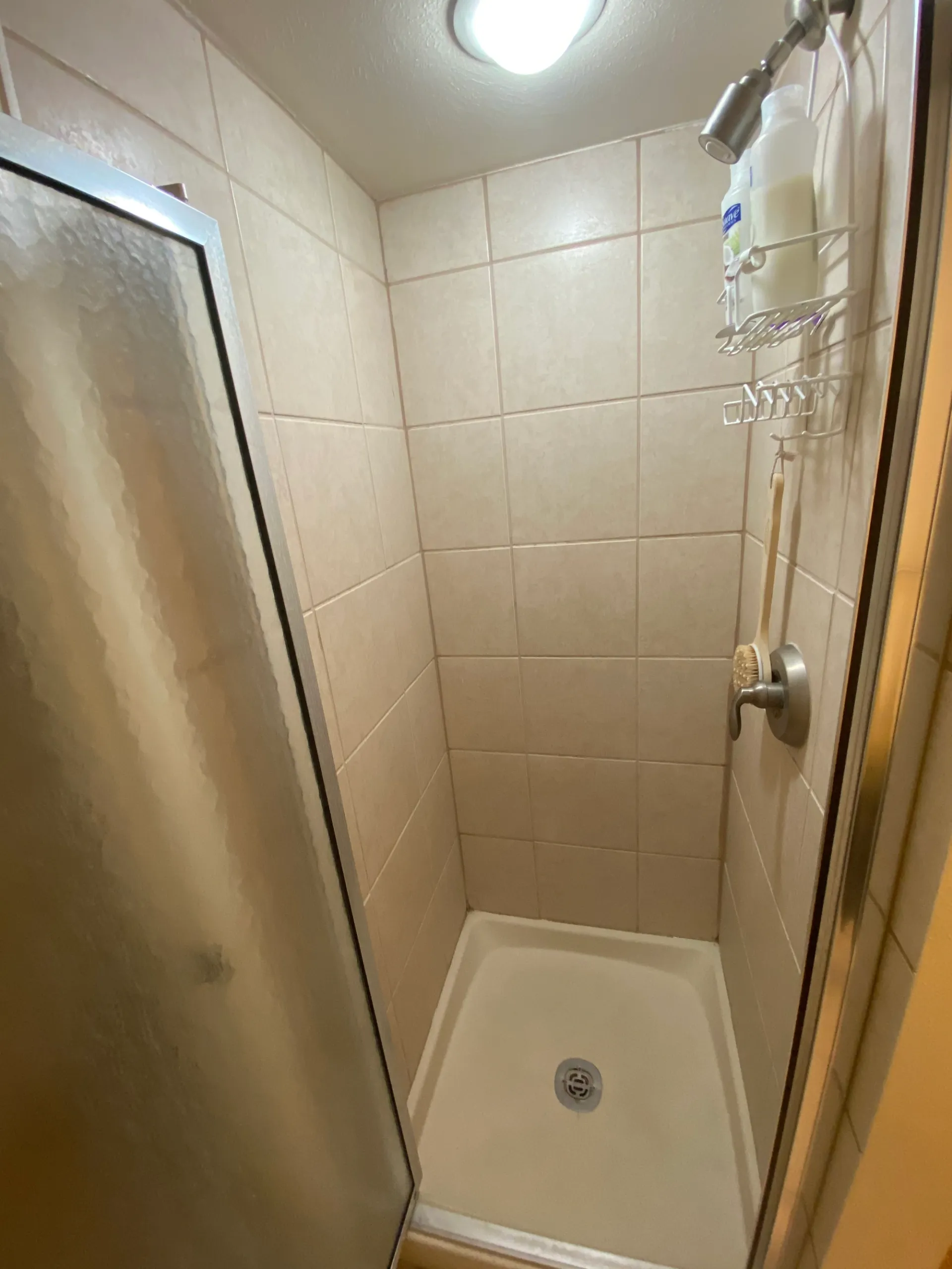 The shower was iiiiitsy-bitsy. Like, don’t drop the soap, because, well, good luck picking it up again.