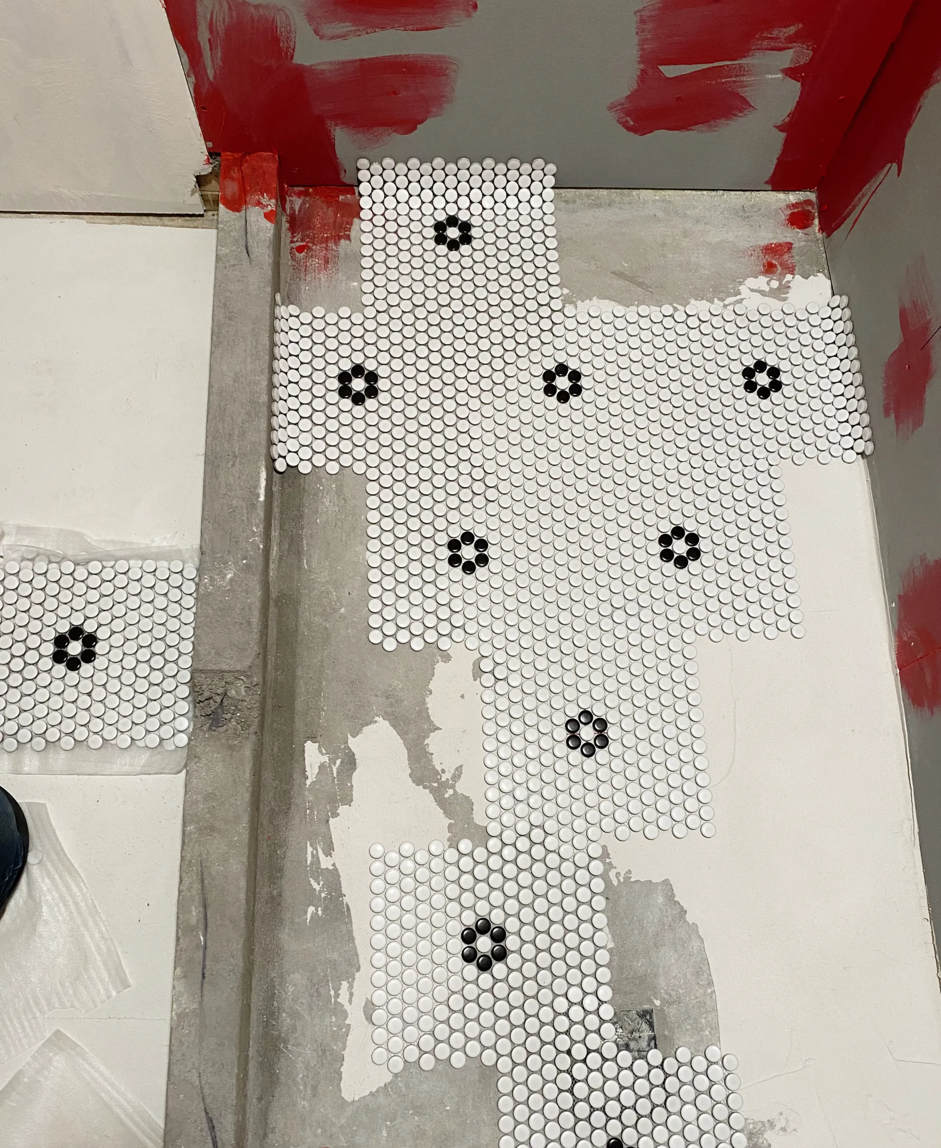 It involved building out a ledge in the shower (for soap bottles, etc.), where the larger tile would be installed.