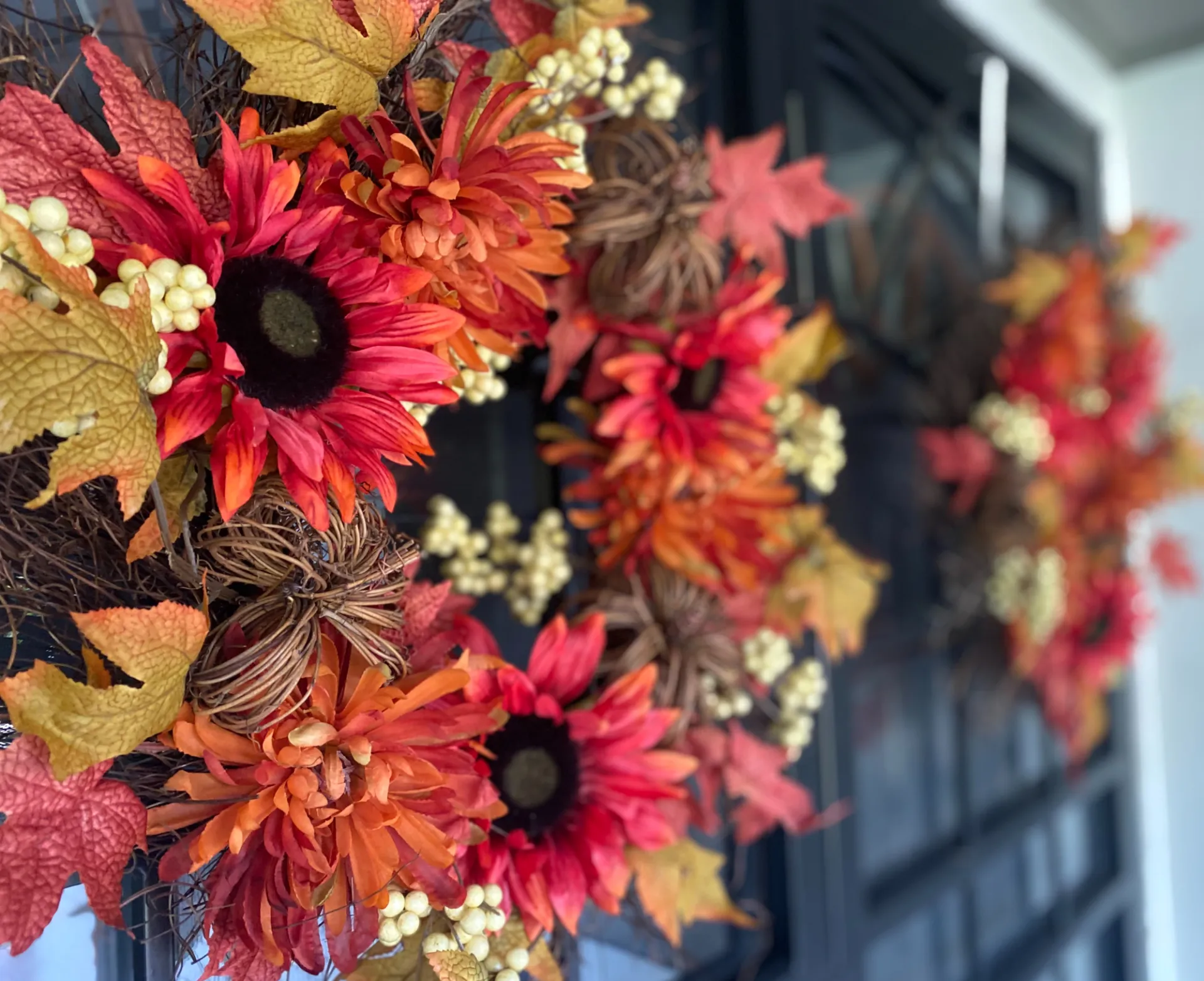- What’s missing? Do you need one big mum to complete the look? Or a colorful Fall wreath? Pumpkins? Fall door mat? Purchase any necessities to complete the Fall arrangement.