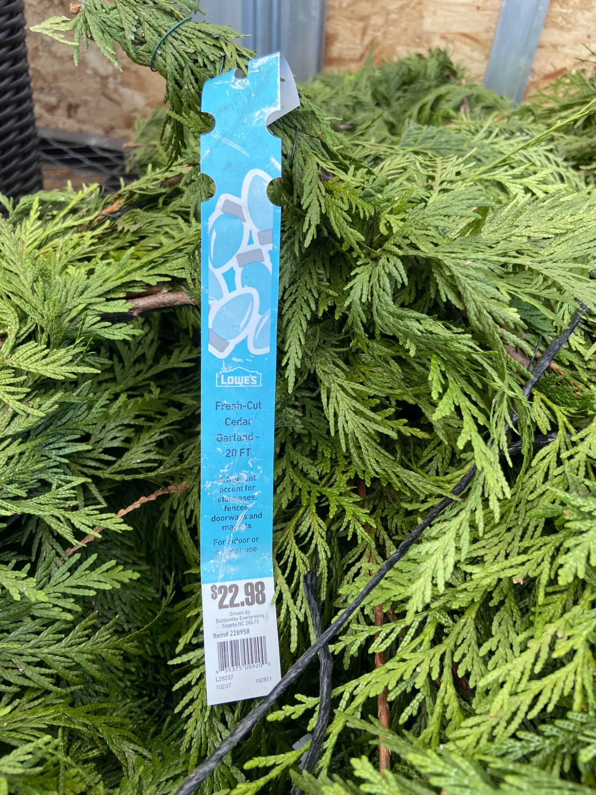 I’ve never bought real garland before but found it at Lowes. It’s also sold at Home Depot, Costco, grocery stores, and other places too, I’m sure. Considering that you get 20 feet of it, I feel like it’s not a bad price!