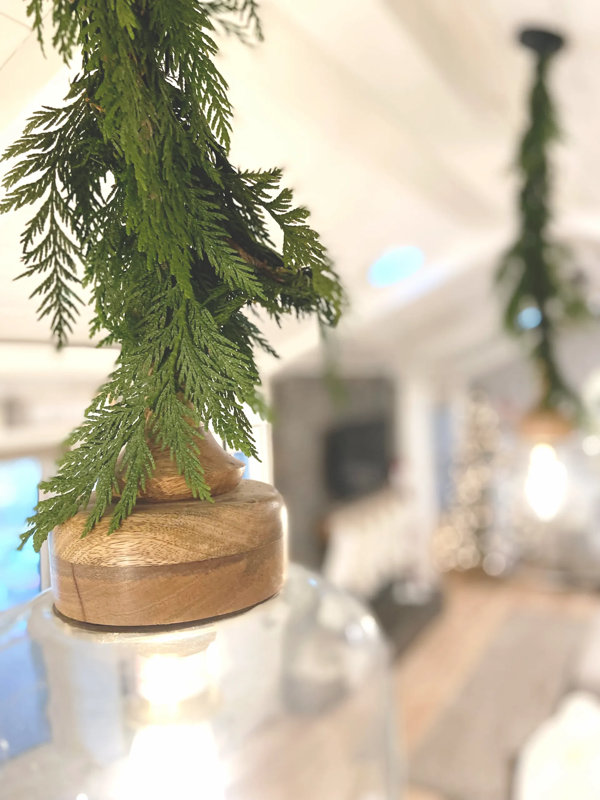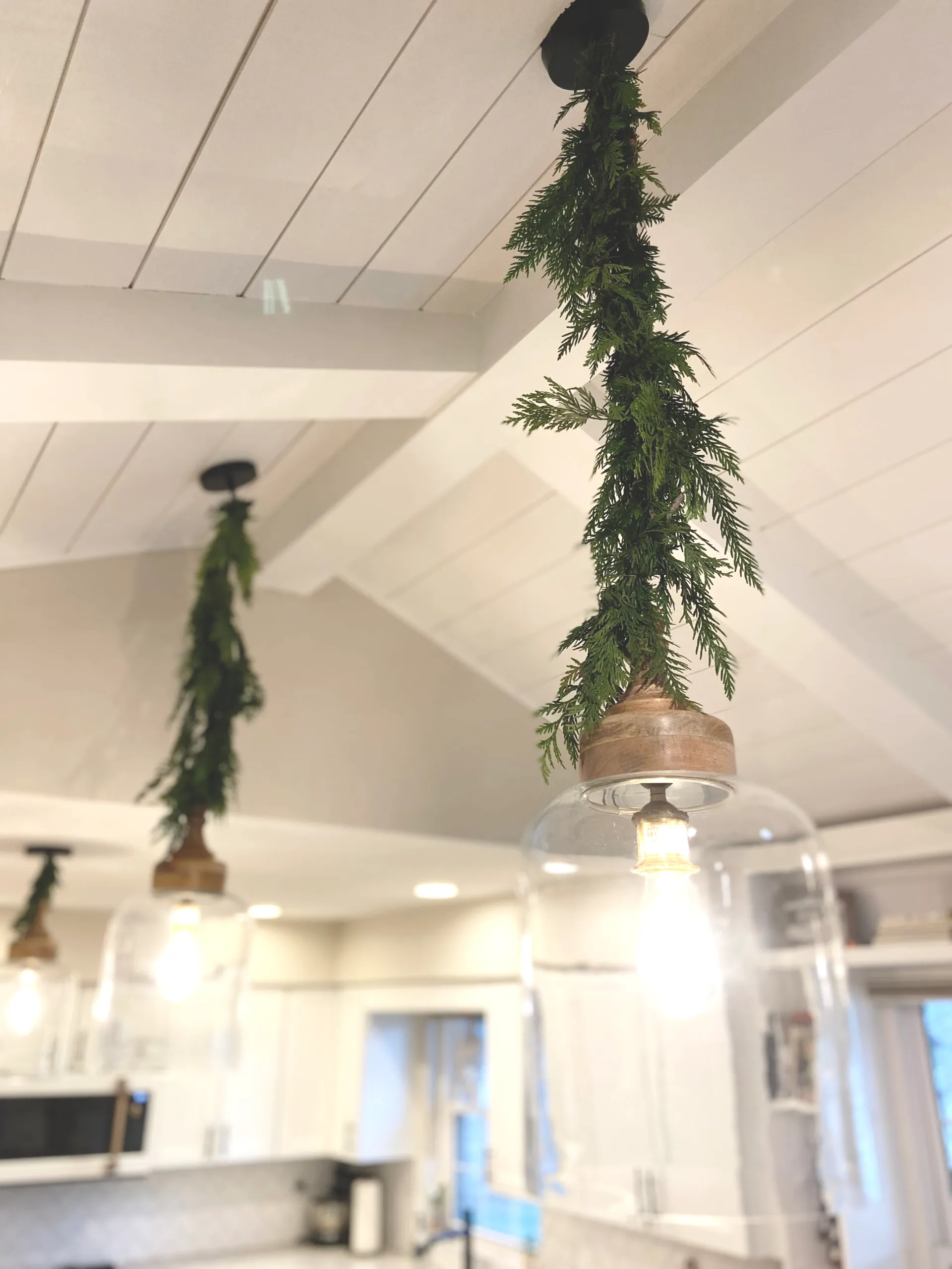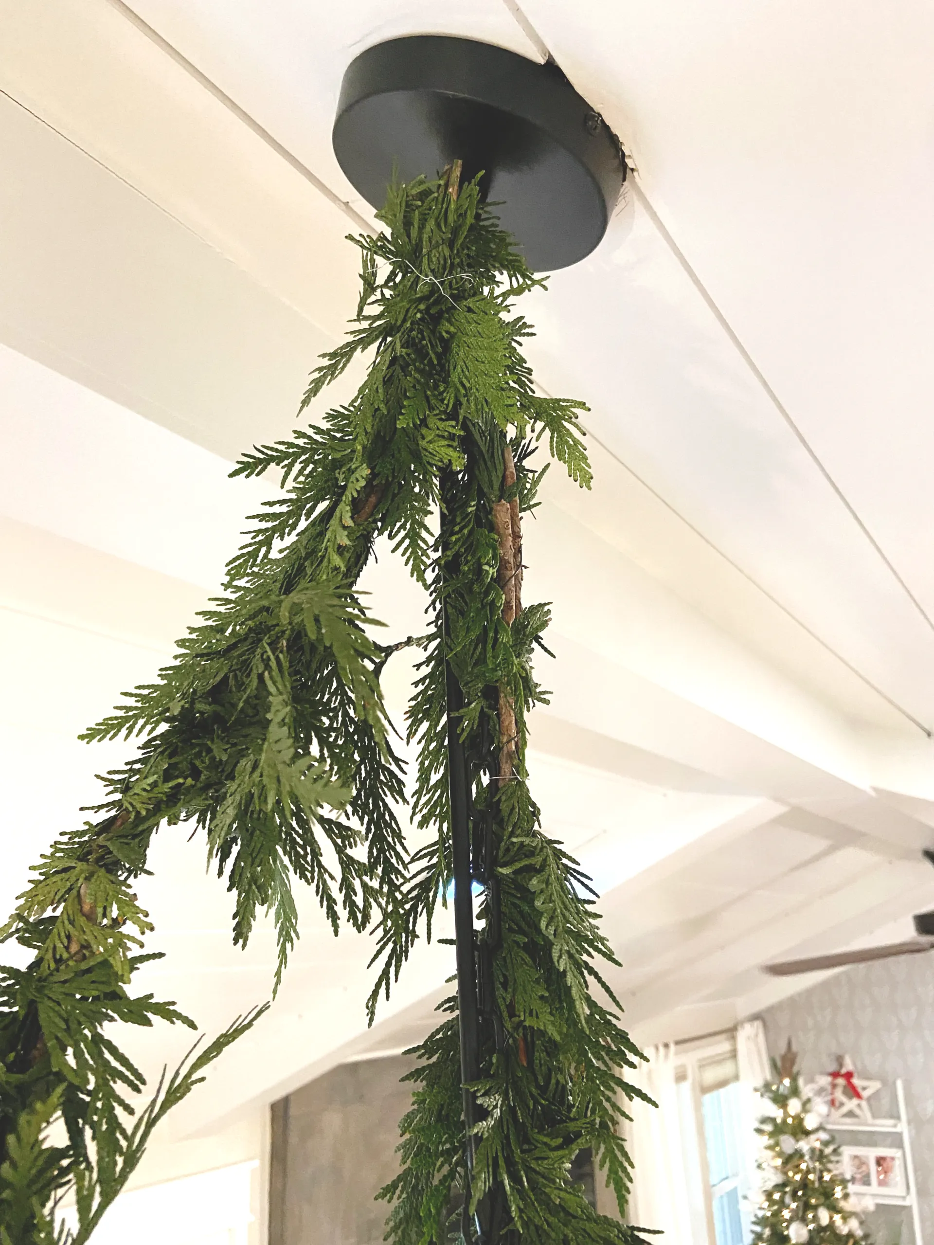 Note: I didn’t think it looked “full” enough with just one piece of garland, so I actually added two to each pendant and that seemed JUST right.