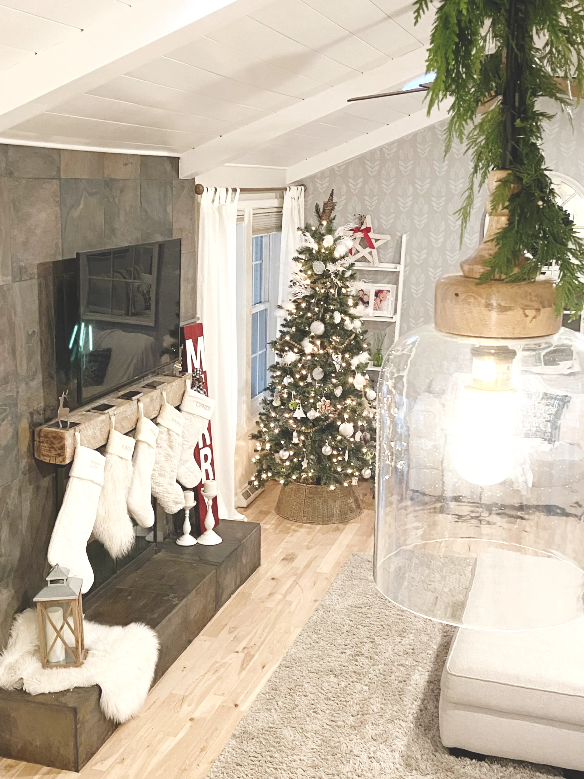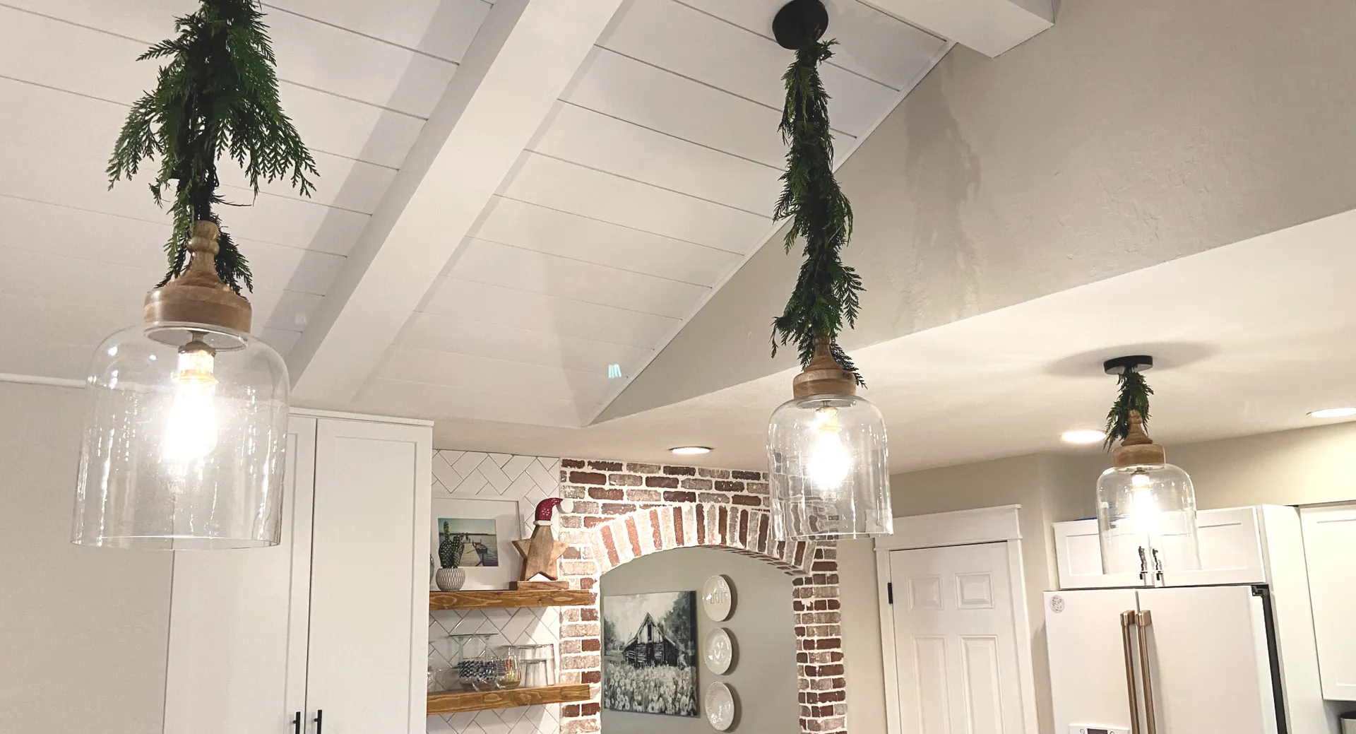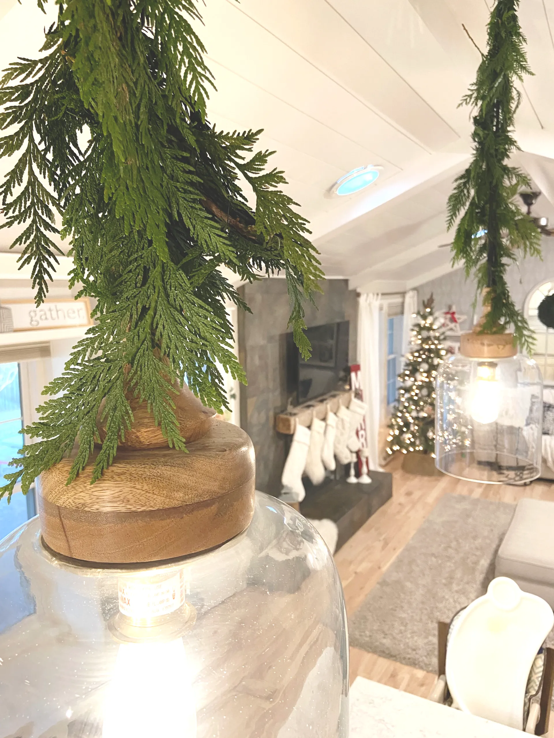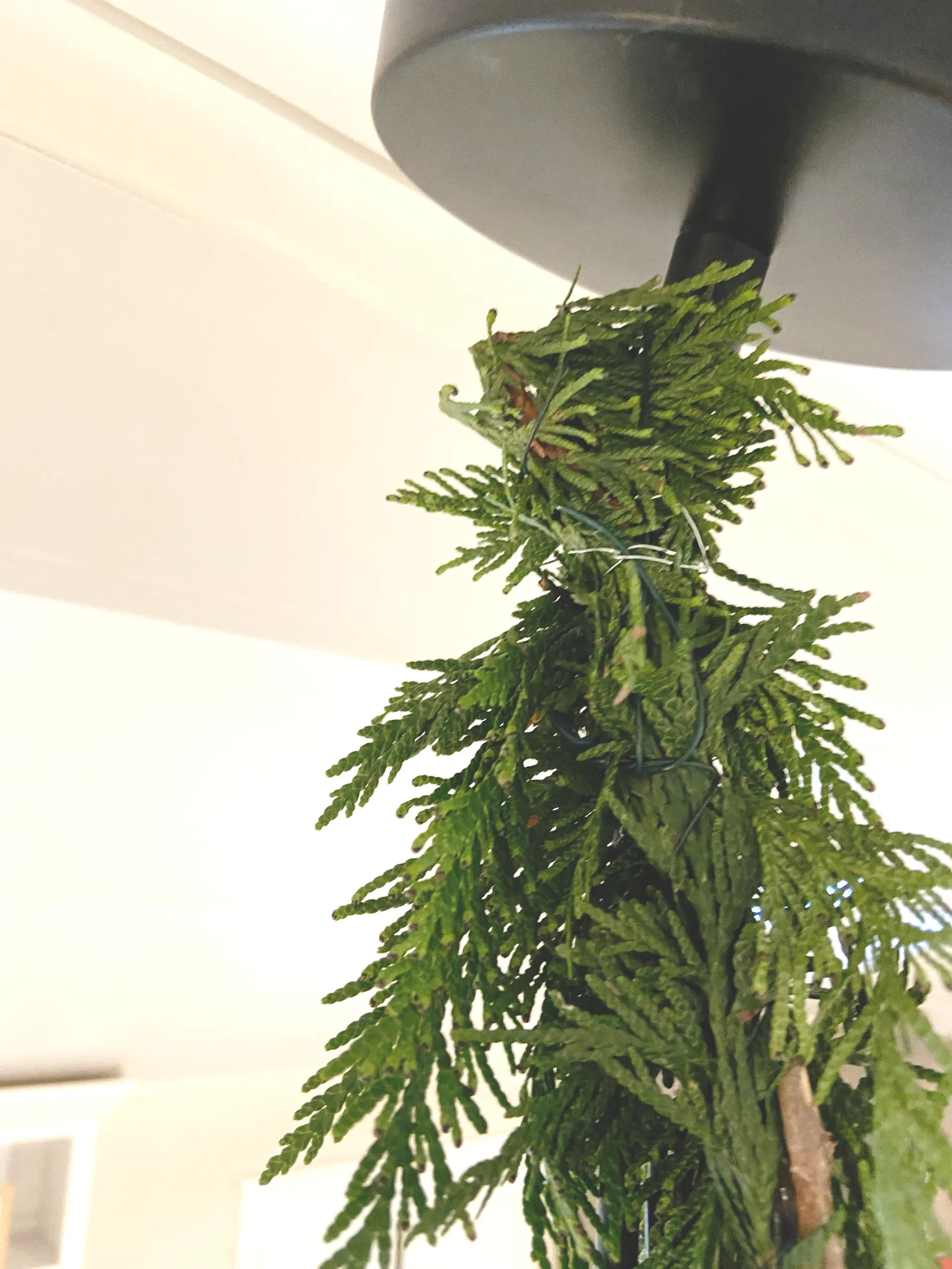 Note: I didn’t think it looked “full” enough with just one piece of garland, so I actually added two to each pendant and that seemed JUST right.