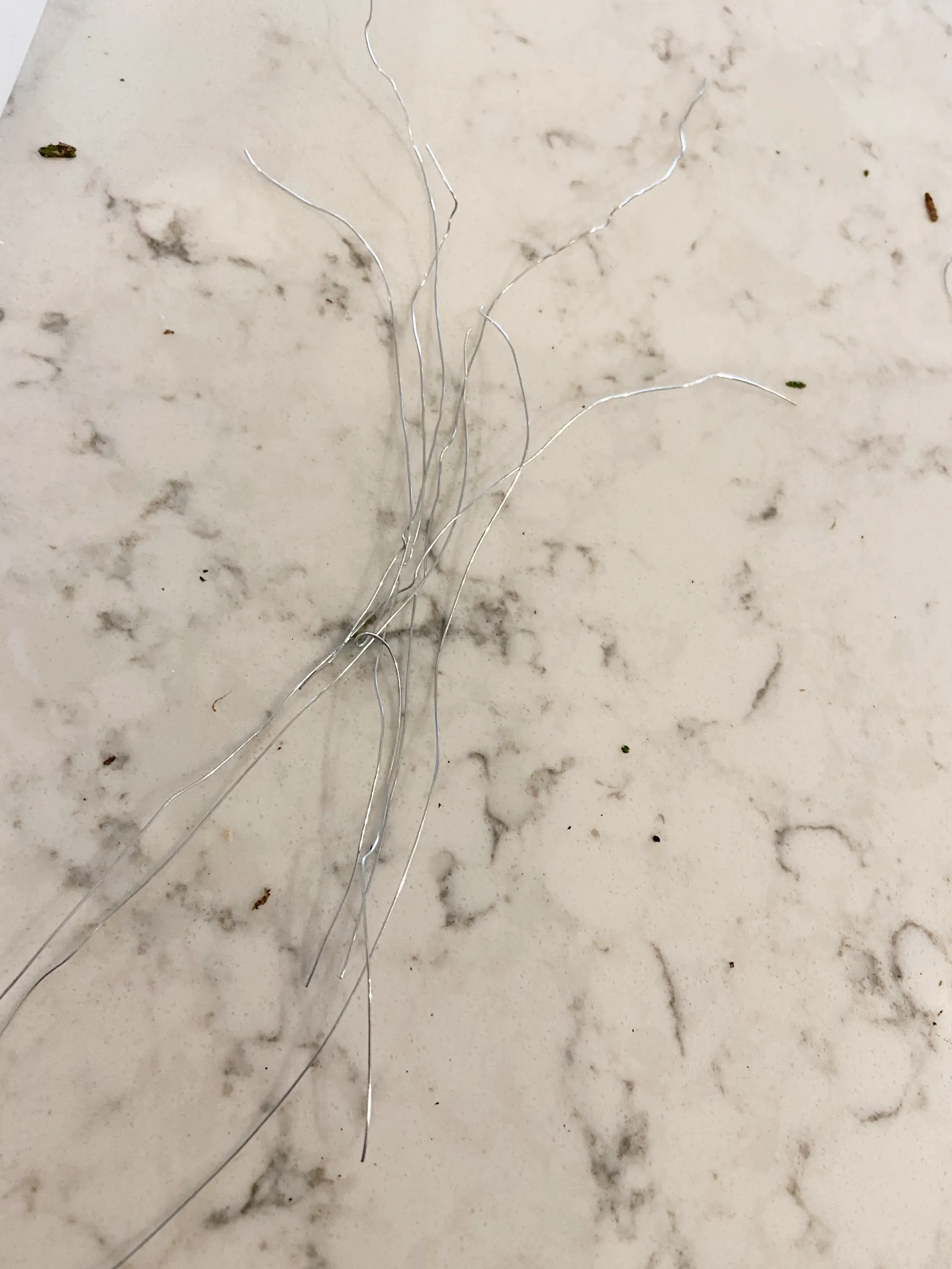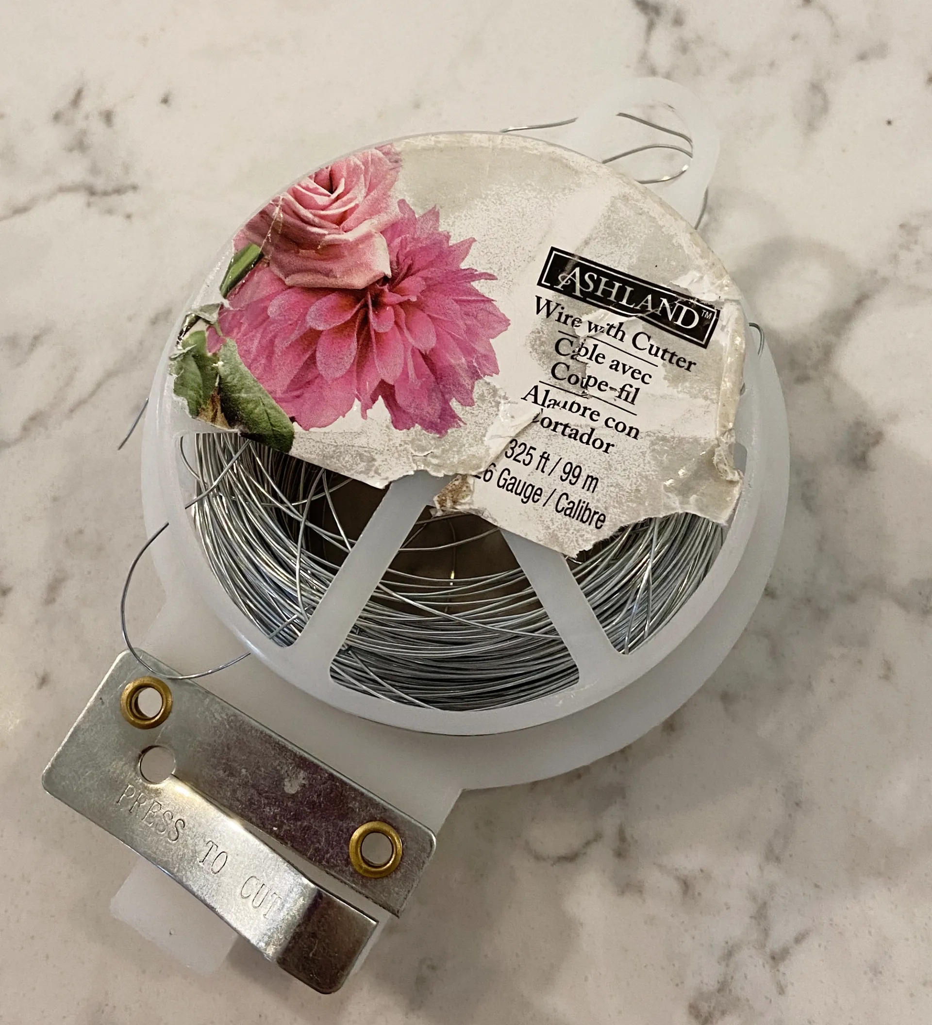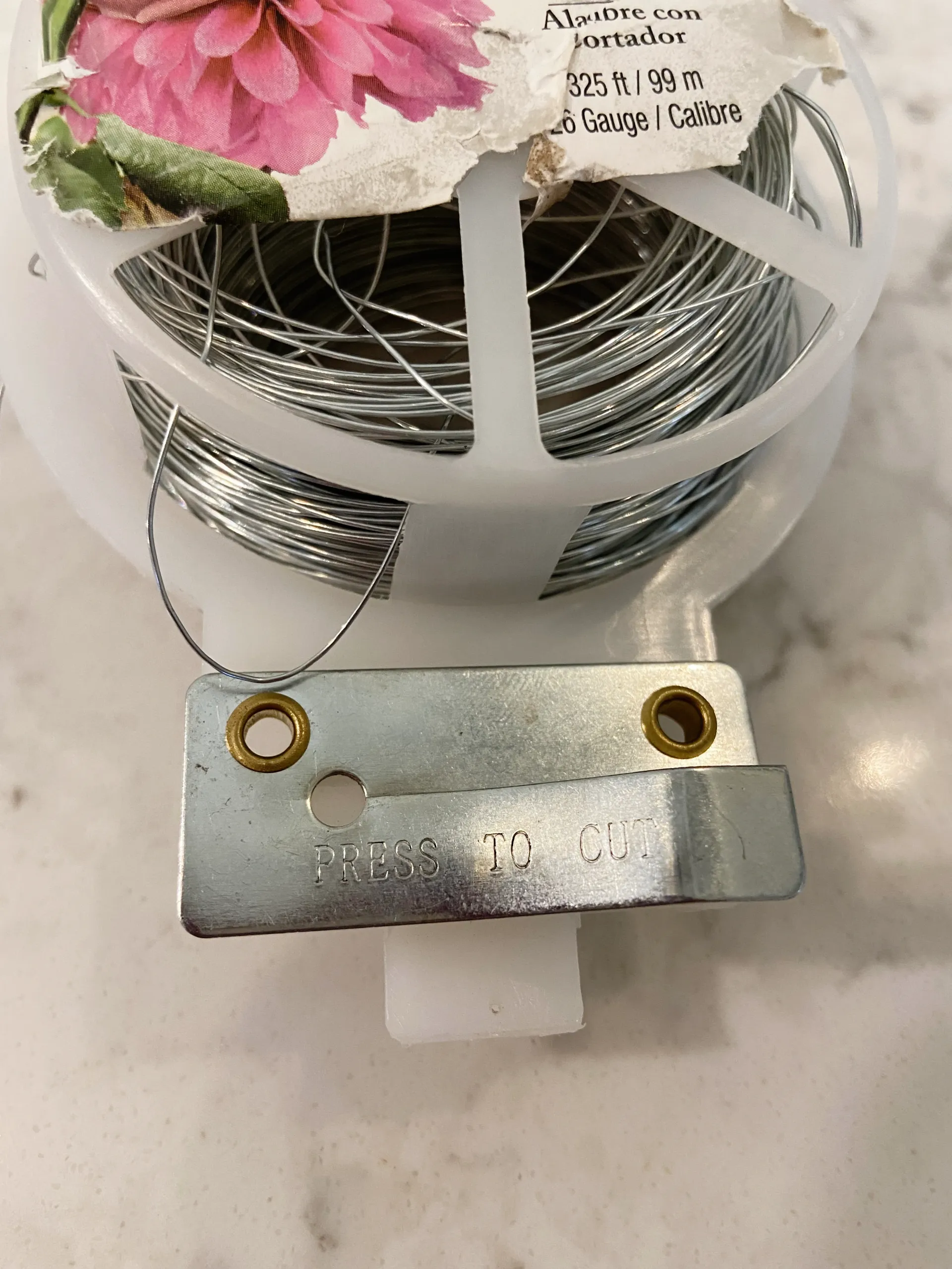 I used floral wire that I had in the house to hang it, but you could also use large twisty-ties, too, I bet! I pre-cut several about 5-6 inches long so they’d be ready for me to use.
