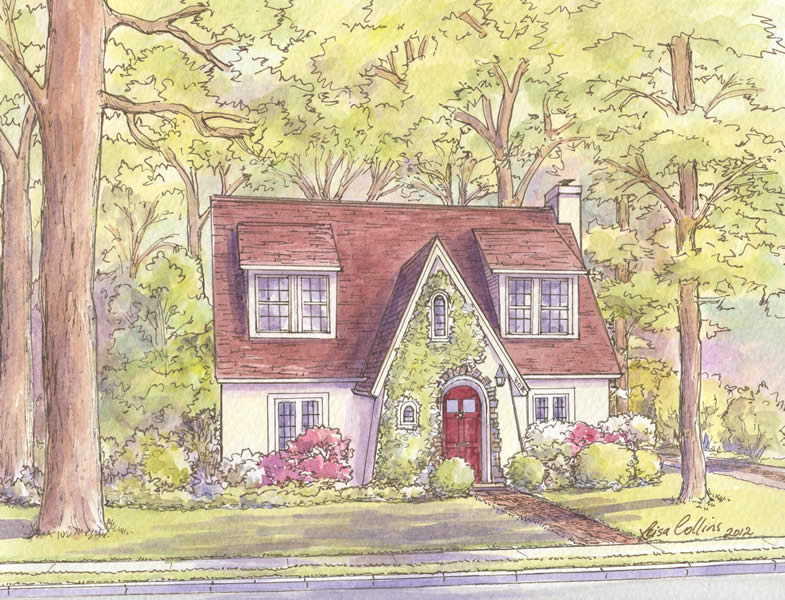 Now, some people may have tossed this aside and thought "not interested" or "is this legit?" but I thought, "OH MY GOSH, DOES SHE KNOW I'M A BLOGGER WHO'S OBSESSED WITH HOUSES?!" 🤗🤩 I was stoked! And then when I looked up the artist, Leisa Collins, I was even more stoked to see samples of her beautiful work!