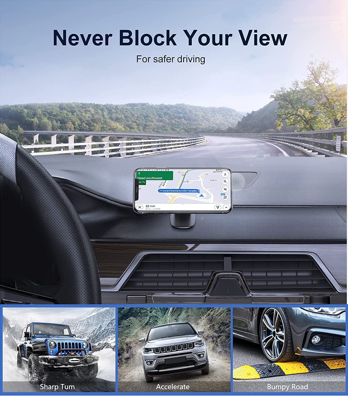 My friend said she's never had a problem using this phone holder! Apparently the N52 magnets are super strong to hold the phone securely and the 3M adhesive sticks really well to the dash. This link to Amazon includes a 2-pack so you and your significant other can each have one - perfect! 😊
